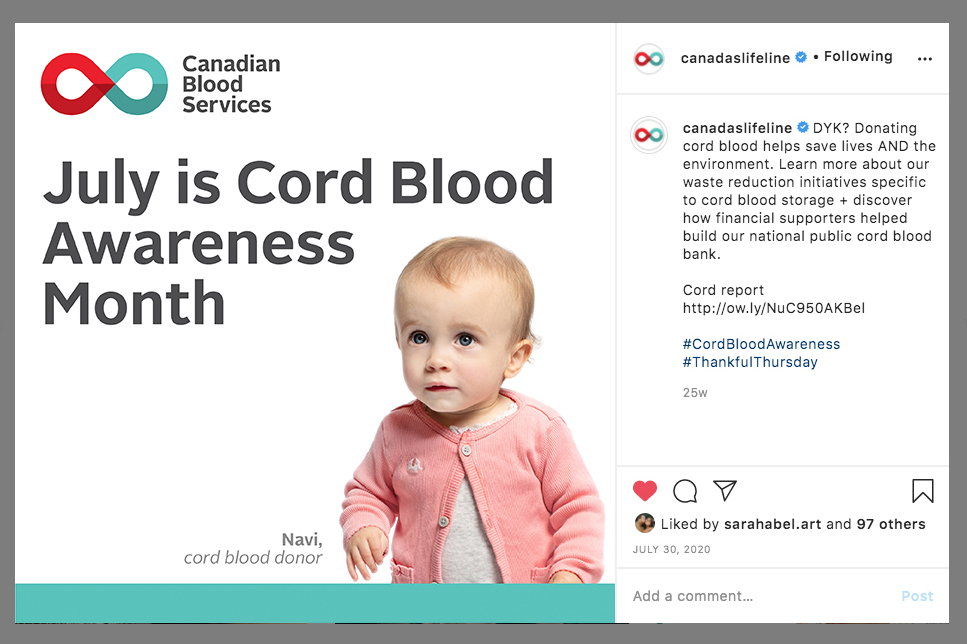 Social media post for Cord Blood Awareness Month.