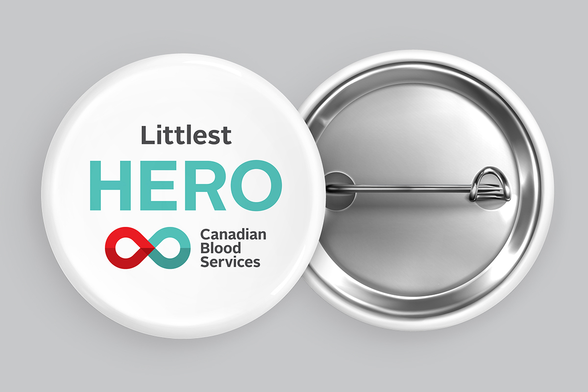 Pin given to new mothers for their "littlest hero" after donating.