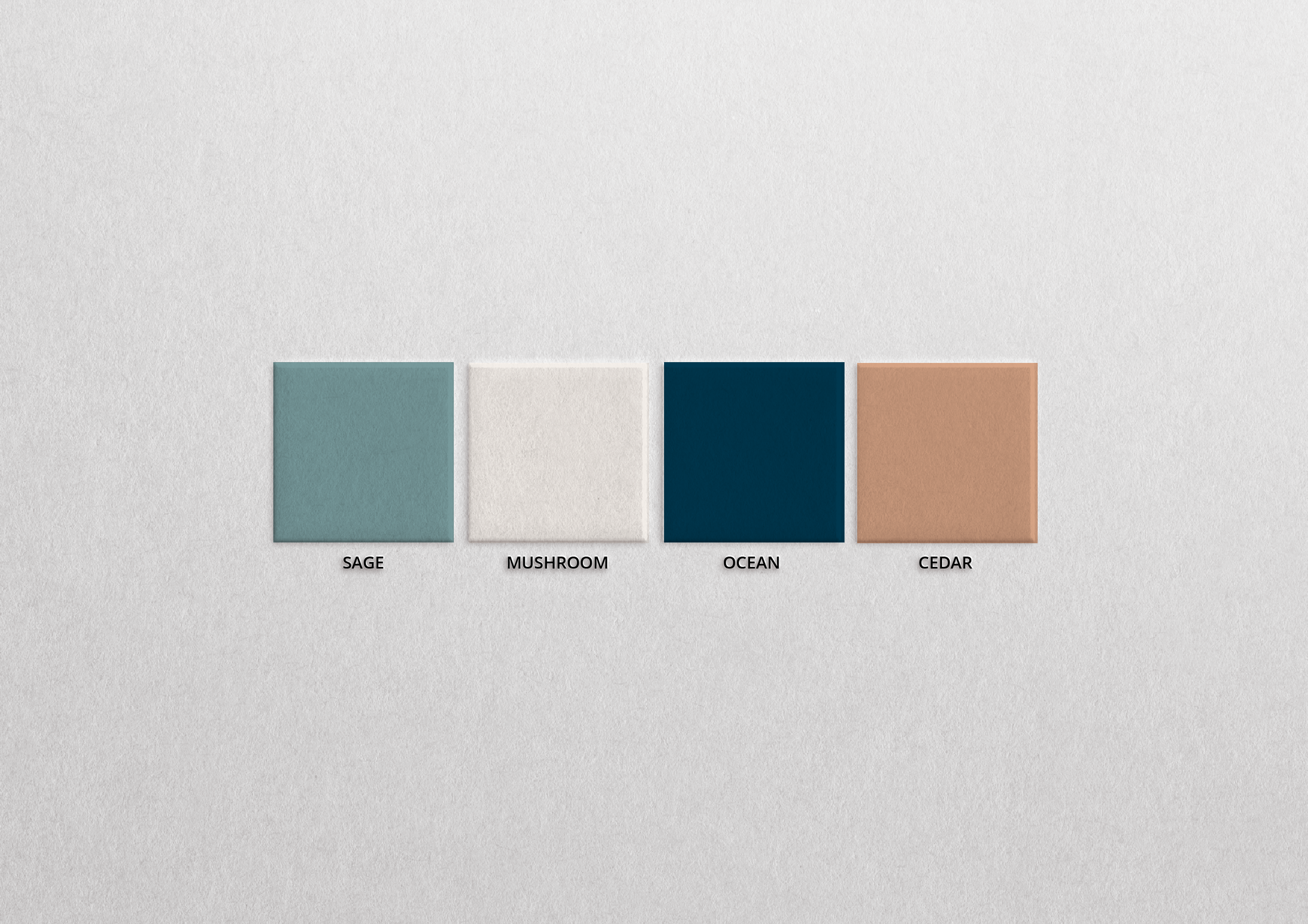 The branding took a biophilic design approach, incorporating colours and shapes found in nature, to create a calm and approachable feel. The chosen colour palette is muted and modern, with shades of green and warm neutrals.